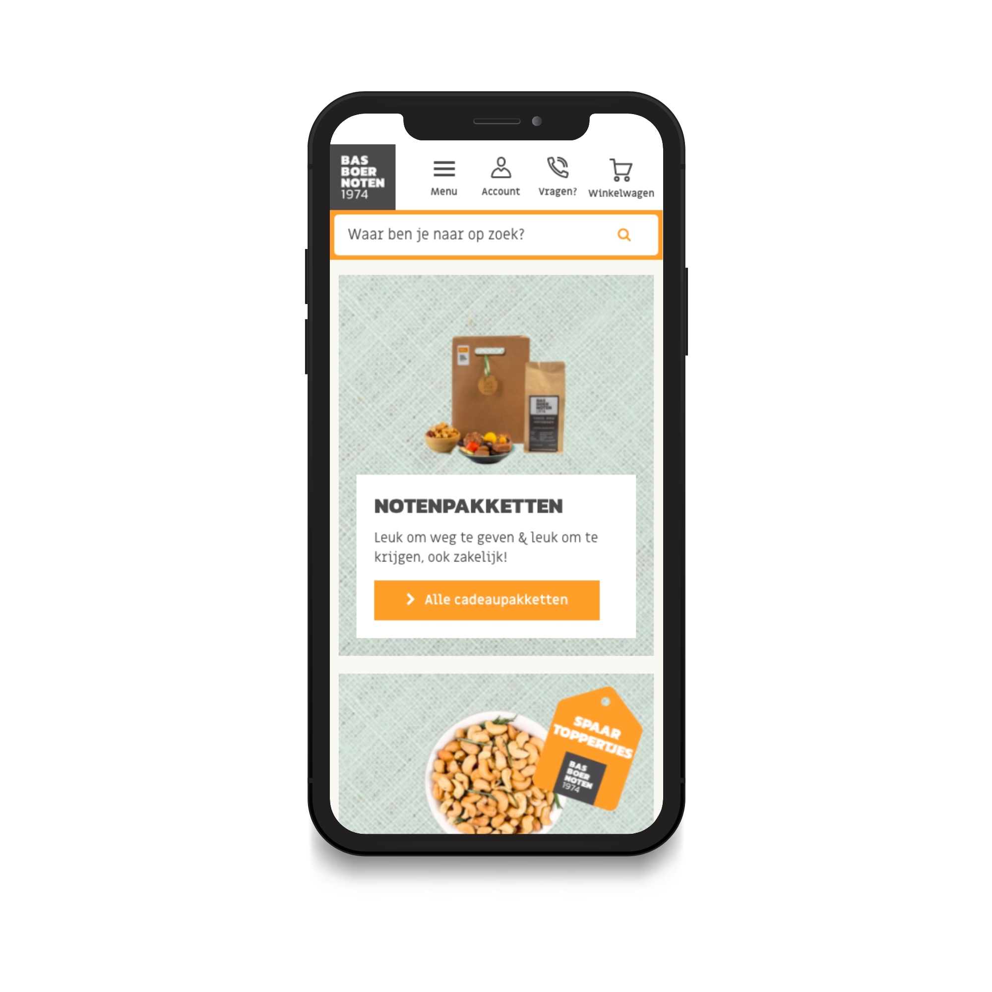Enkele jaren geleden werden wij gevraagd om de webshop van Bas Boer Noten te voorzien van een compleet re-design. Sinds het realiseren van de nieuwe webshop hebben we proactief mogen doorontwikkelen aan het e-commerce succes van Bas Boer Noten.